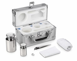"KERN Safety Sets" which have been specially developed and put together and contain the right test weights to test and monitor your balance. This "KERN Safety Set" contains one test weight for testing the upper end of the weighing range of your balance and one test weight for testing the lower end. As an option, the "KERN Safety Set" has space for another test weight, for testing your balance at a weight which is relevant for you. Useful accessories which have been selected to suit that particular "KERN Safety Set", such as, for example, special gloves, tweezers, weight grips, brushes, etc. will assist you in handling your test weights properly. Stores in the practical protective case next to your balance, you can check and ensure the high precision of your balance at any time.