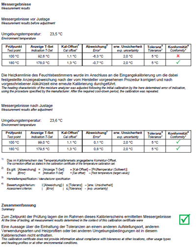 From now on another service completes the range of KERN: the temperature calibration of moisture analyzers. Complying the correct temperature is crucial for the comparability of the results of moisture determinations. Regular calibrations of the temperature can guarantee this - please just contact us.
