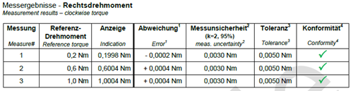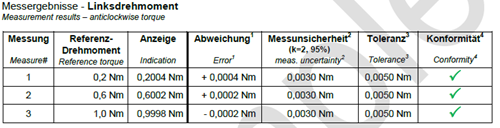 During calibration the manufacturer or customer tolerances are checked and re-adjusted if desired. The conformity of the tolerances is confirmed in the calibration certificate.